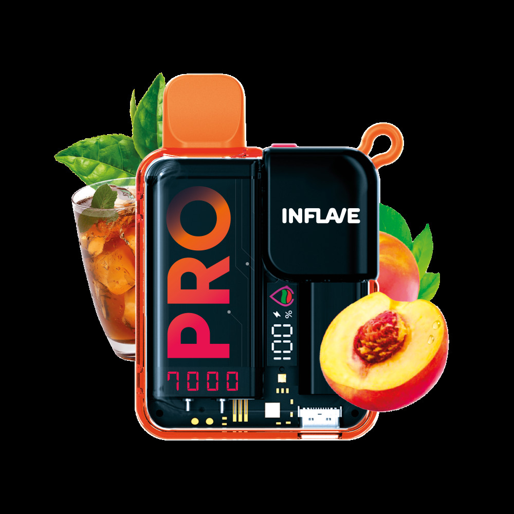 Электронная сигарета Inflave Pro 7000 затяжек Персиковый Чай. Идеальный прохладительный напиток на все случаи жизни, который в любое время года отлично утоляет жажду. Охлажденный черный чай с бархатным, томным и сочным вкусом сладкого персика.